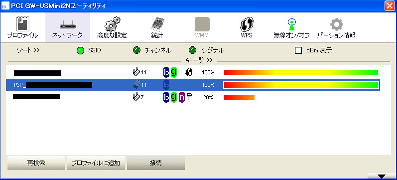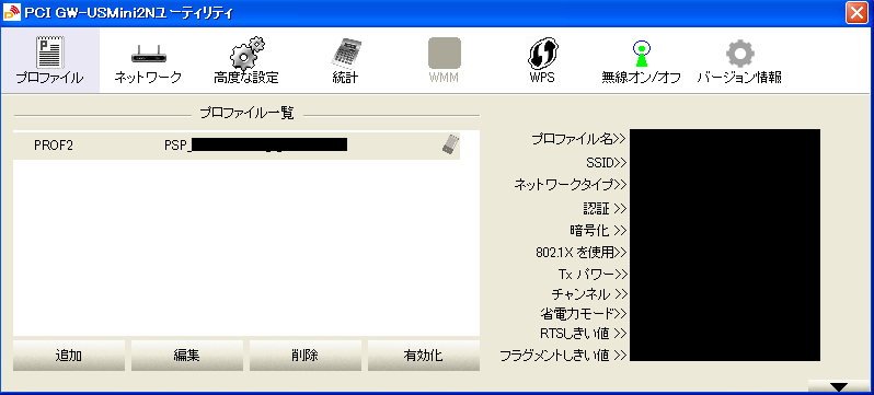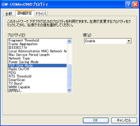 Wi-Fi USBアダプタ3 あとあと忘れてしまったときの自分のために。そして同じような状況で「うぎー!」とかなってる人のために。ゲームテック社のWi-Fi USBアダプタ3を使ってもkaiにつなげない!という人向けに、自分がやった方法を書いておきます。とても説明下手ですがよければお役に立ててください。でも追記を読む前に、ステーションモードで試してみてください。GW-USMini2Nはステーションモードで繋ぎます。アクセスポイントだと思い込んでいた僕のような人がいるかもしれないので、念のため。 調べても調べてもわからない。製品やプロバイダのサポートセンターに電話してもだめだったので、調べた+kaiで訊いて繋がったときにやった方法です。まず、製品は上でも書いたけどこちら。まず前提。・付属の取り扱い説明書通りにやってもできない。・製品付属の「ラクラク設定マニュアル」で試して、インストラクチャーモードでPSPと通信ができる。(※PSPのネットワーク設定でワイヤレスLAN設定が完了している)・これ書いてる人はネットは無線LANでつなげてます。まあ、PSPの設定とかはネットで検索かけたらやり方が書いてあると思いますし、取説通りにやったらできると思うので省略。さてまいりましょうか。まず、PLANEX社にいってドライバを入手してきてください。こちら。すでにPCにドライバが入ってる場合はアンインストールしたほうがいいんじゃないかなと思います。(自分は「プログラムの追加と削除」のとこざっと見てなかったからやってないけど)で、インストールが済んだらタスクバー(画面右下のとこ)にアイコンが追加されると思います。これを使います。ちなみにPCのほうでの設定は済みましたか?「ネットワーク接続」を開く→GW-USMini2Nの「ワヤレス ネットワーク接続」を右クリック→「プロパティ」→「構成」→「詳細設定」でプロパティの《PSP Xlink Mode》を選択、値を《Enable》にします。余談ですが僕の場合、上記の設定はドライバをインストールするまで何回やっても何回やってもEnableがDisableに戻ってしまい頭がパーンしてました。同じようなひといるかな。とりあえずドライバをインストールして、PC再起動したらEnableで設定されてるとおもいます。さーて、らくらく設定ナビ。消しましょうか。ゲームするだけならたぶん、いらないと思います。ただ、ワイヤレスLANでPCとネットにつなぐ人は……すいません、わかりません。自分、PSPでモンハンする為だけに買ったのアダプタなのです。(´・ω・`)とにもかくにも、これでPCとPSPの設定が完了したと思います。あとはkaiを設定します。(kai設定方法はネットにごろごろしてるのでググってください)そして、ここでは唯一持っているモンハンPortable2Gを例に書いていきます。■モンハン2Gの場合0)PCにアダプタを差し込みます。1)PSPモンハン2G起動して、オンライン集会場へ入ります。 ※PSP設定でチャンネルは11ch、モンハンのオプション「オンラインロビー選択」はAUTOにしておいてください。)3)kaiを起動させ、「ゲームアリーナ」→「PSP」→「Action」→「Monster Hunter Portable 2G」→「japanese」へと進みます。 ※知り合いの部屋がある人はそちらへ、ない人は「HR FREE&初心者マーク」→「接続サポート」あたりにでもいきましょうか。そこで聞いてもよし。4)長いよ!ええと、まず、アクセスポイントモードではなく、ステーションモードで起動させてください。ここでタスクバーのPlanexのアイコンを右クリックして、無線LANユーティリティを起動してください。するとこんな感じに出てくると思います。「PSP_」と出てれば通信できてます。名前のところをクリックすると、画像みたいに青くなります。そしてプロファイルに追加をクリックしてください。次にユーティリティの「プロファイル」と書かれたアイコンをクリック。すると画像のようにプロファイル一覧に表示されていると思うので、有効をクリック。これでPSPとkaiが接続されたと思います。kaiの診断ボタンをクリックして、consoleのところにPSPの画像が表示されているか見てください。表示されてなければ、PSPとkaiが繋がっていません。設定を見直しましょう。5)さて、おそらくこの時点で部屋に誰かいたらその人が表示されていると思います。その人と一緒に狩りに出て行きましょう。終わり。多分にわかりずらくてすみません(汗)適宜修正していくと思いますが、とりあえずはこんな感じです。kaiのチャット方法や、英語版や日本語版の違い(自分は日本語版kai使用)はググってくださいませ。2011/3/8追記。ちなみに、もしこの方法で「使えた!」という方がいらっしゃいましたら、コメントにてその旨を書いておいてもらえると、後々に他の方がここに巡りついたときに有効orイマイチの指標になって嬉しいなぁと思います。名前とか適当だったり、「これで使えた」「いけた!」などの一言でいいので、どうぞ少しでもお時間があればお時間よろしくお願いします。 [0回]PR